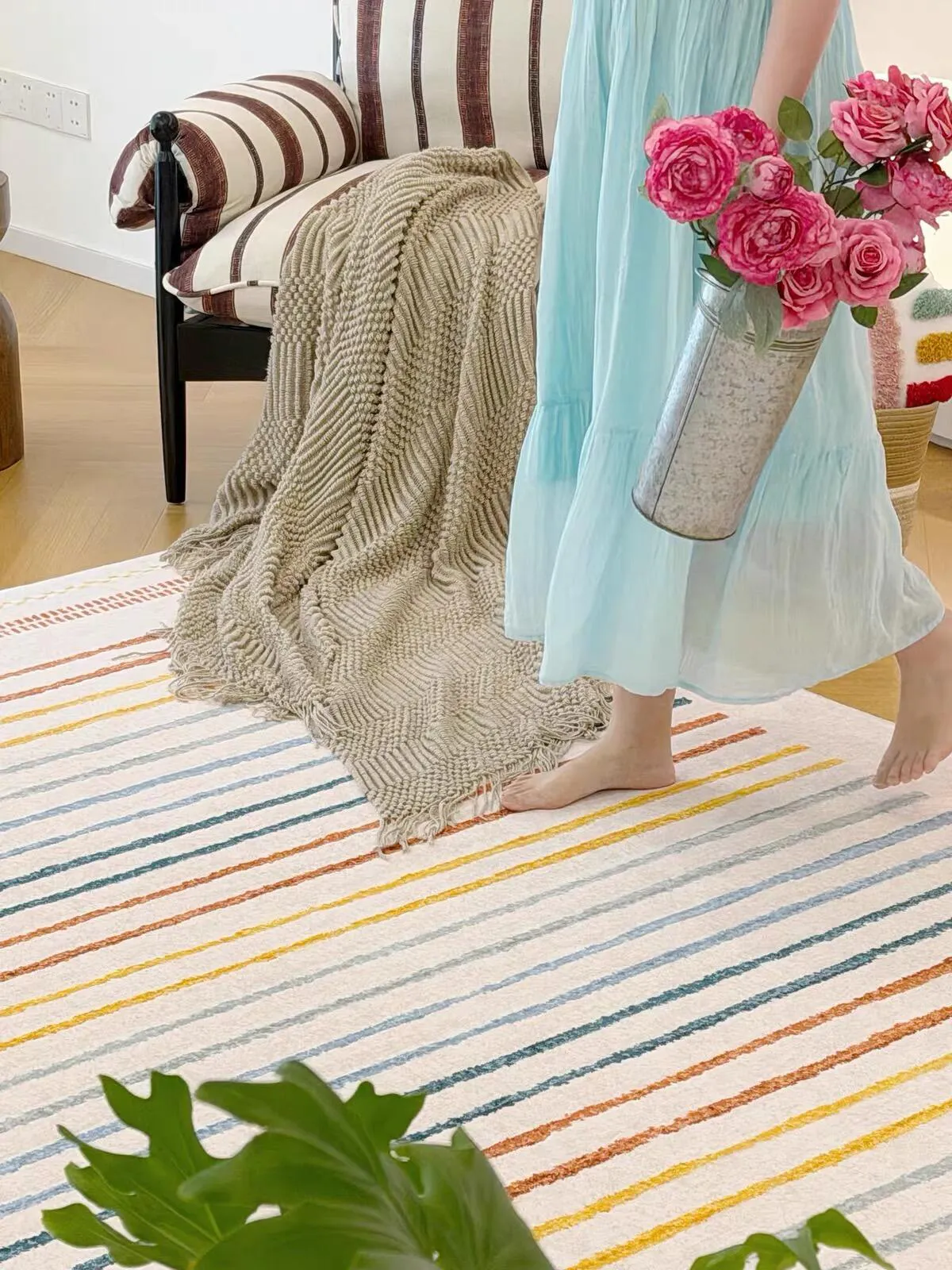 The colors are gentle and not too bold, which I really like. The velvet surface feels smooth and comfortable underfoot.